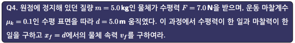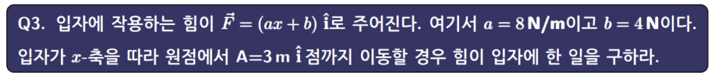 F = (8xN/m + 4N)i -> 0~3구간 적분 = 48J