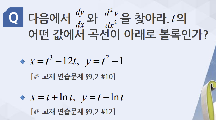 첫번쨰: 2t/3t^2 -12, 그리고 d^2y/dx^2 은 d(dy/dx) / dx 랑 같은말이니, (2t/3t^2 -12)’/3t^2 -12 임.