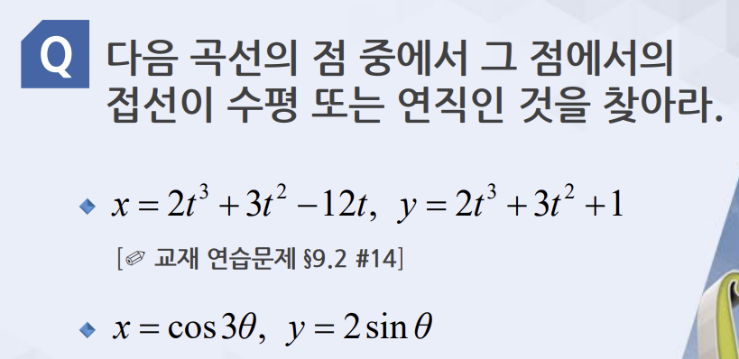 두번쨰: 기울기는 2cosk/-3sin3k -> k=pi/2, 3pi/2 등 그리고 0, pi/3, 2pi/3 등이 답임