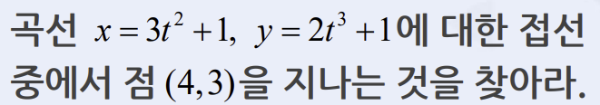 접선: tx-t^3-t+1 따라서 t=1