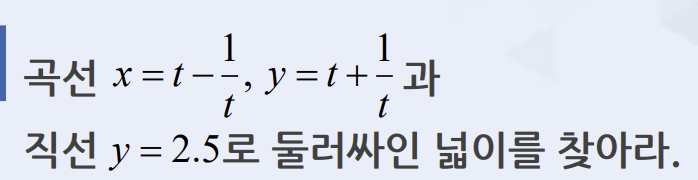 y=(x^2 +4)^0.5 -> x=sqrt(y^2 -4) -> 를 [2,2.5] 구간에서 dy로 적분하고 그 값을 2배