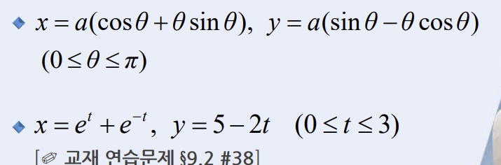 두번쨰: sqrt{(e^t -e^-t)^2 + (-2)^2}를 [0,3]구간에서 dt로 적분 하면 됨