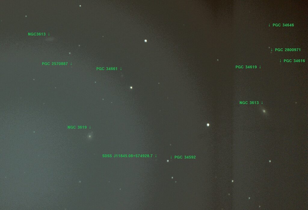 좌측 상단에 있는 은하는 NGC3625인데 NGC3613이라고 잘못 적었다.