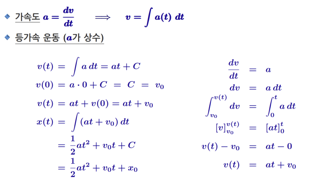 가속도는 다시 속도를 미분